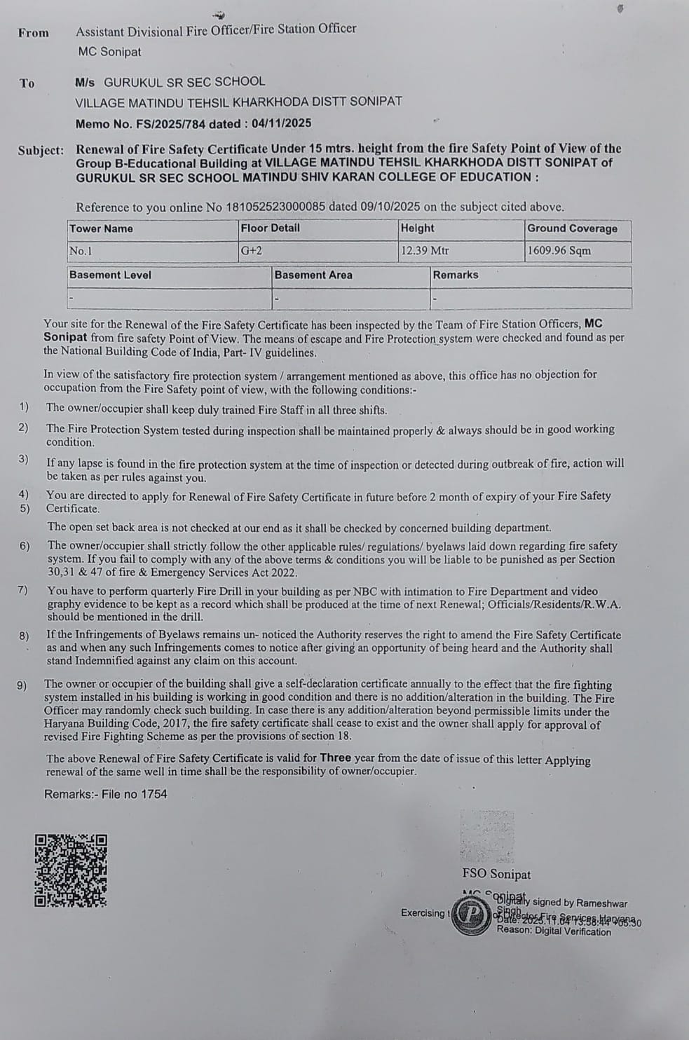 COPY OF VALID BUILDING SAFETY CERTIFICATE AS PER THE NATIONAL BUILDING CODE |